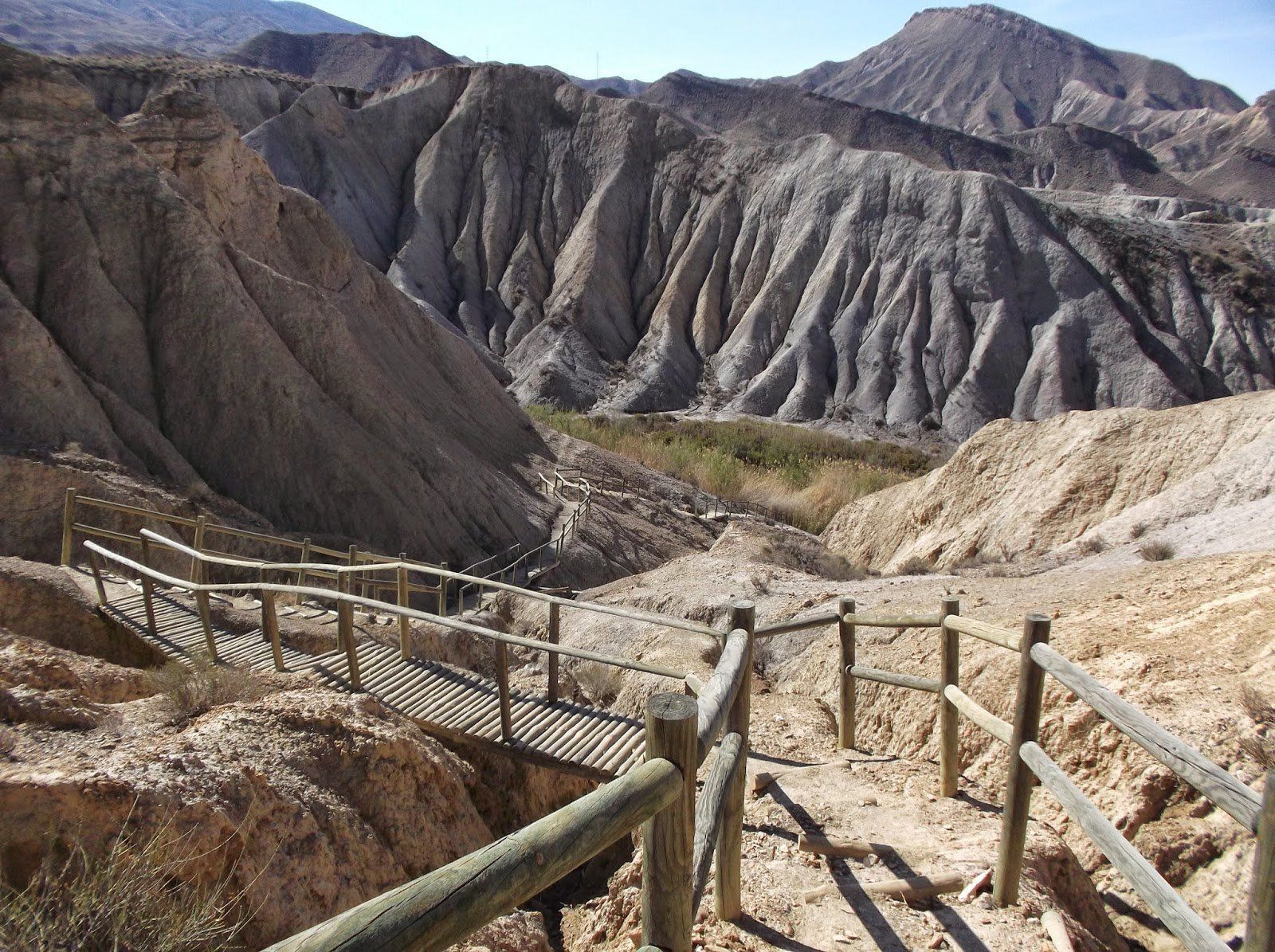 El desierto de Tabernas es ampliamente conocido por el uso que de él se ha dado para el rodaje cinematográfico, pero este paisaje esconde muchos otros tesoros. En primer lugar, decirte que este paisaje es único en Europa, tanto su flora, como su fauna, se ha adaptado a este lugar, lo que te hará visualizar especies que posiblemente nunca antes hayas podido admirar. El desierto se extiende por el norte de la ciudad de Almería, puedes realizar esta ruta por tu cuenta, o a través de las numerosas visitas que diferentes empresas organizan. Eso sí, no olvides agua, gorra, y que el cansancio en este espacio aumenta debido al suelo arenoso y al entorno.